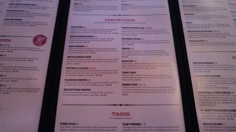 All vegan tacos start with hickory smoked tofu grilled withchipotle barbecue, topped with red cabbage slaw, avocado andSriracha sour kream in 3 tortillas, and served with green riceand black bean salad. (V, GF)